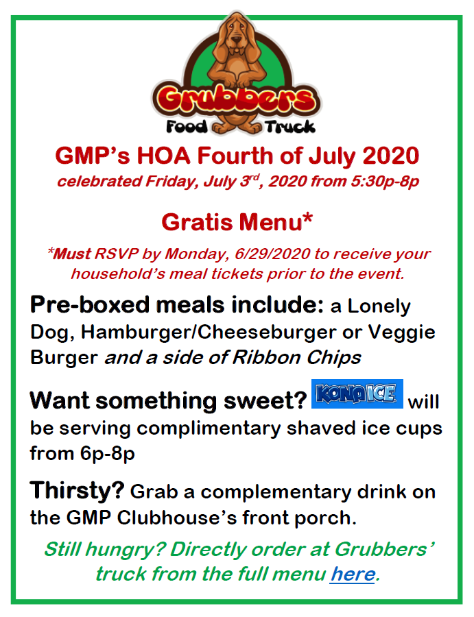 Links: Event Flyer, RSVP for Dinner Tickets, Menu Details, GMP Scavenger Hunt and GMP Summer Home Contest.